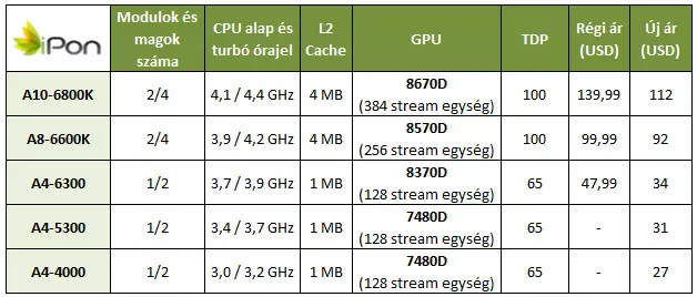 A Richland és Trinity kínálat szintén vonzóbbá vált – itt ugyancsak 5 modell árát szabta át az AMD. Ezeknél a termékeknél már szerényebb az árcsökkentés mértéke, de azért itt is látható egy-két jelentősebb kiigazítás, amelyeknek valószínűleg sokan fognak örülni – főleg így karácsony előtt.