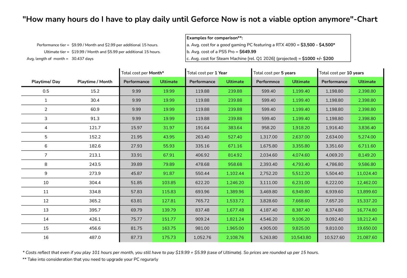 Ez a számok nyelvén azt jelenti, hogy a Performance Tier a 9,99 dolláros havidíjért cserébe csak 100 órányi játékidőt engedélyez, ha ezt túllépi a felhasználó, természetesen vásárolhat extra órákat, méghozzá 15 órás „kiszerelésben”, amelynek ára 2,99 dollárt kóstál. Az Ultimate Tier esetében, ami már havi 19,99 dollárba kerül, a 100 órányi játékidő elérését követően a további extra órák 5,99 dollárba kerülnek majd, ezért az összegért pedig ugyancsak 15 órányi játékidővel bővíthetjük az adott hónap keretét.