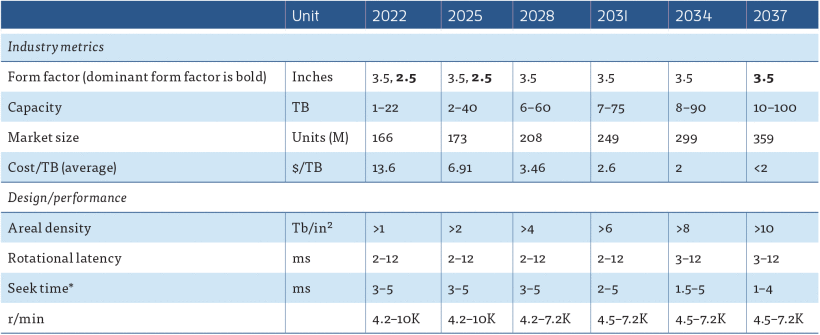 Az IEEE (Institute of Electrical and Electronics Engineers) egy érdekes útitervet tett közzé, amelyből kiderül, hogyan számolnak a HDD piacon, már ami a különböző fejlesztéseket és az adattároló kapacitás alakulását illeti. Az útiterv elég széles időszakot fed le, ugyanis 2022-től egészen 2037-ig tartalmazza a főbb mérföldköveket, ám azt azért érdemes hozzátenni, hogy a valóság másképp is alakulhat, például akkor, ha nem várt nehézségekkel találja szemben magát a piac.