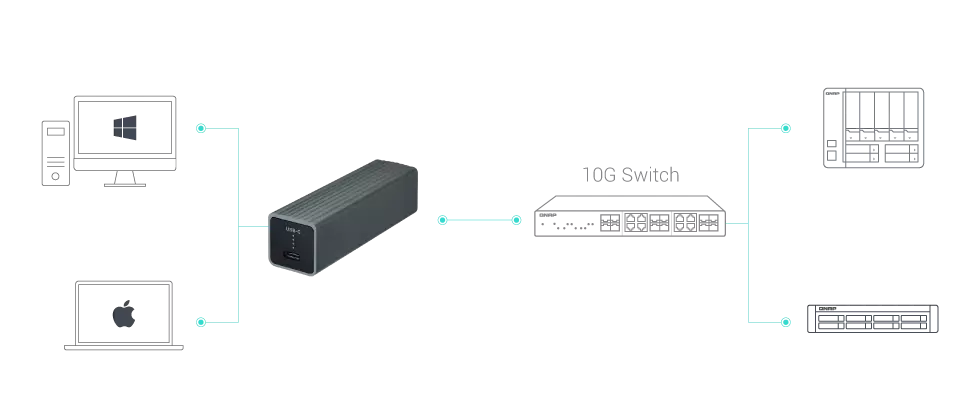Az eszköz az áthidalni kívánt távolságtól függően CAT6, illetve CAT5e típusú kábelezést igényel, külön tápadapterre viszont nincs szüksége, hiszen az USB 3.0-s port áramellátásával beéri. A terméket a QNAP QTS 4.3.6-os kiadásától felfelé minden QNAP hálózati adattárolóval használni lehet, de akár Windows 7-es vagy frissebb operációs rendszerrel ellátott számítógépekhez, illetve akár macOS alapú rendszerekhez is használhatjuk. A támogatott operációs rendszerek között szerepelnek a 3.10-es, 3.12-es, 3.2-es, 4.2-es és 4.4-es kernellel ellátott Linux disztribúciók is.