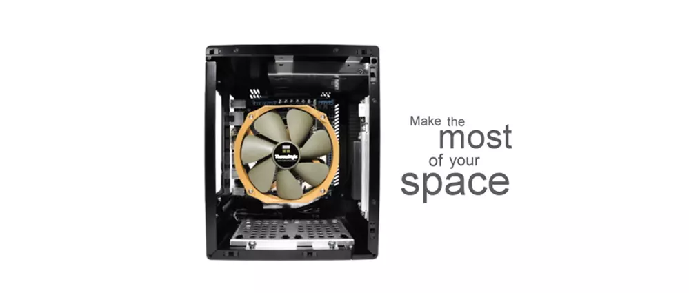 A hűtőtömb felett alap esetben egy TY-100-as légkeverő teljesít szolgálatot, amely 108,25 x 101,5 x 14 milliméteres mérettel bír, azaz vele együtt sem magasabb az új processzorhűtő 58,15 milliméternél.