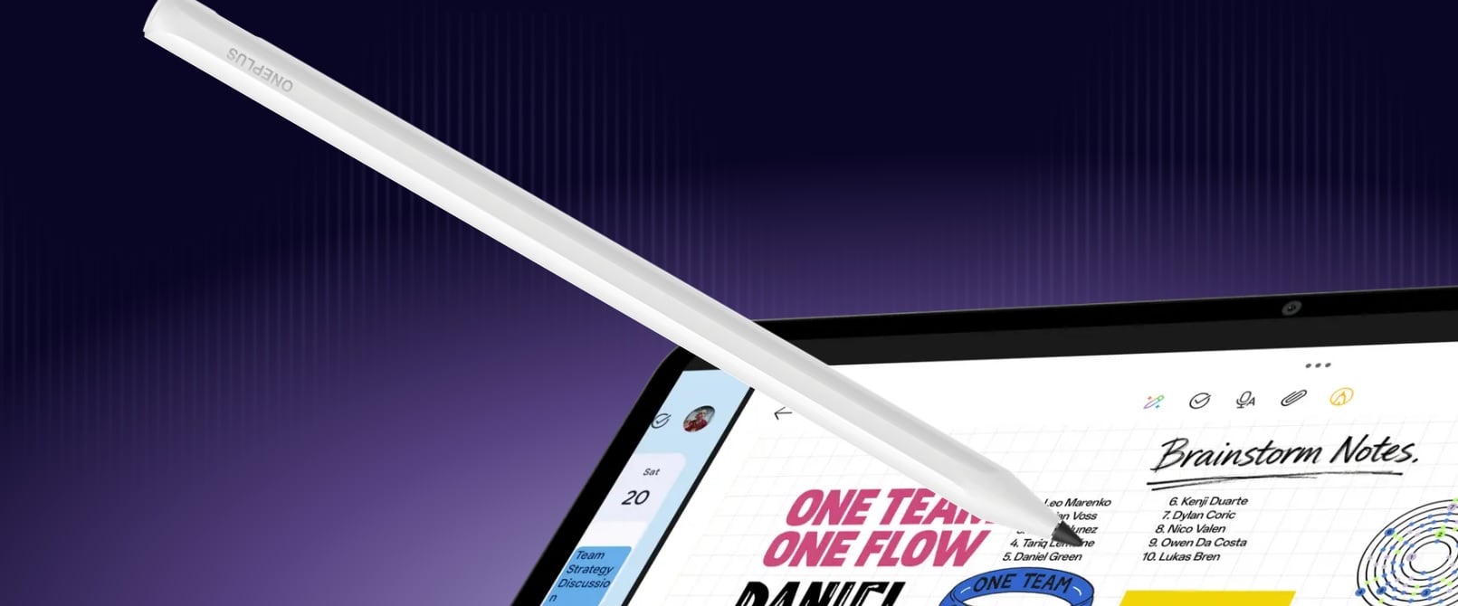 A OnePlus a kreatív felhasználóknak szeretett volna a kedvében járni, ezért kifejezetten nagy hangsúlyt fektetett az érintőtoll támogatásra, akár még kikapcsolt kijelző mellett is lehet majd gyors jegyzeteket „firkálni” a panelre. Az eszköz jeleskedni fog a kézírás felismerésben, és 4096 nyomásszintet képes megkülönböztetni. Aktív tollat tervezett a OnePlus a táblagéphez, rendelkezik nyomógombbal, ami több funkciót tud ellátni, és 20 órás az üzemideje, miközben Bluetooth-on kapcsolódik.