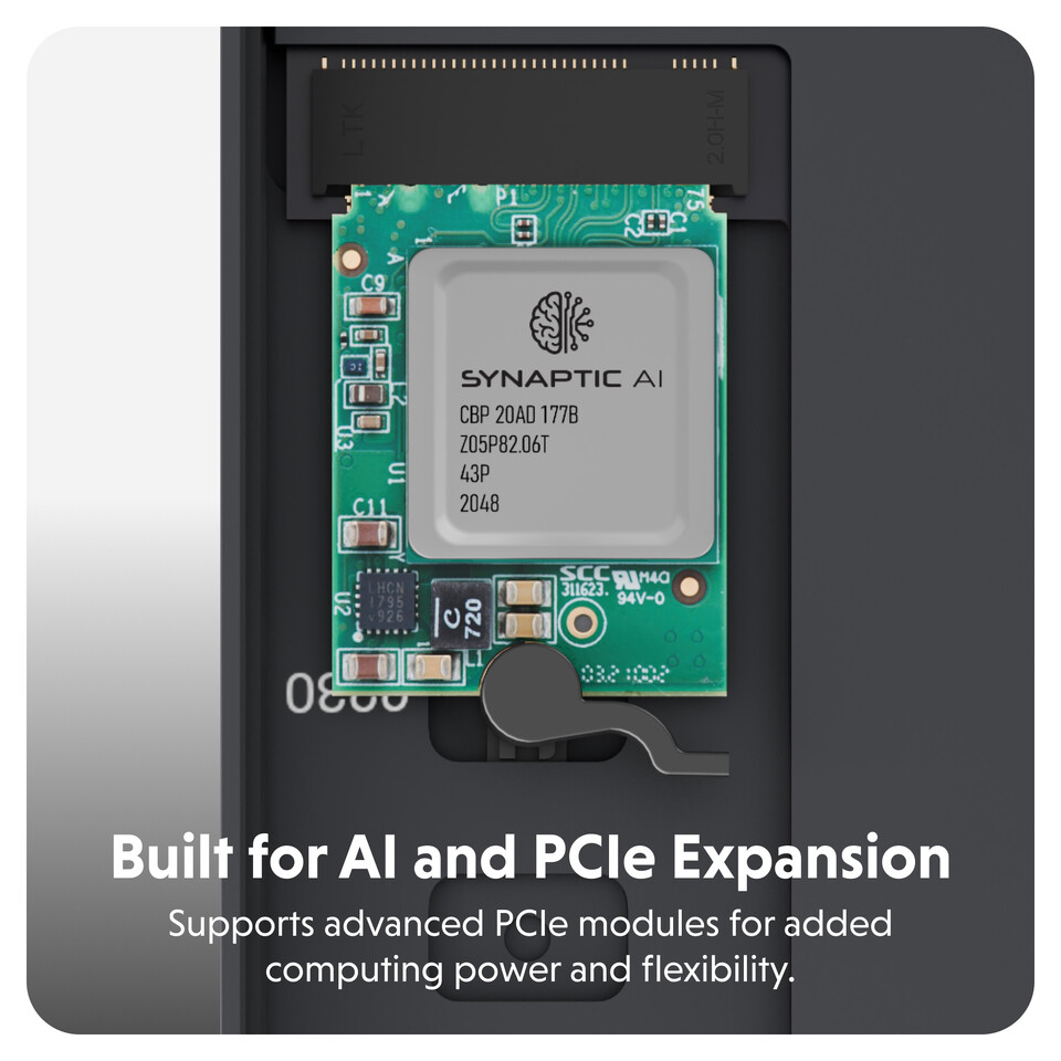 A házon belül egyébként a klasszikus M.2-2280-as mellett az M.2-2260-as, az M.2-2242-es, illetve az M.2-2230-as formátumú SSD kártyák használatra is van mód, sőt, akár M.2-es formátumú AI gyorsítók is helyet kaphatnak odabenn, ha éppen extra AI képességekkel szeretnénk felvértezni az adott rendszert.