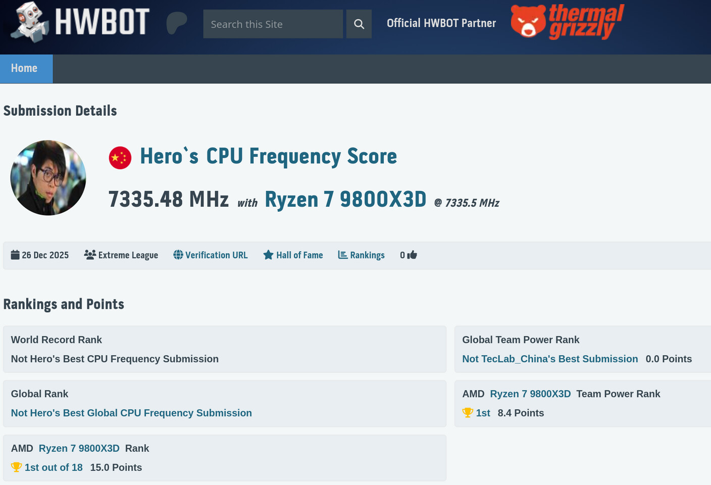 A 7335,45 MHz-es processzor-órajel világrekord egy meglehetősen impresszív eredmény, ami viszont csak a RYZEN 7 9800X3D kategórián belül minősül világrekordnak, az abszolút processzor-órajel világrekord továbbra is egy Core i9-14900KF modellhez fűződik, amellyel 9130,33 MHz-es órajelet sikerült elérni anno, méghozzá folyékony nitrogén alapú hűtés használata mellett, jókora adag szerencsével, de az már egy másik történet.