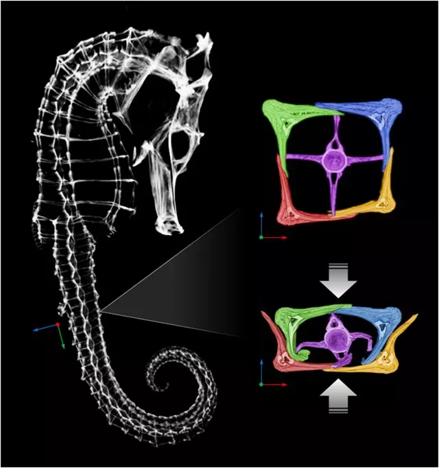 A csikóhal fő ragadozói, a tengeri teknősök, rákok és különféle madarak a hal testének összeroppantása révén pusztítják el az állatot. A kutatók kíváncsiak voltak rá, hogy milyen mértékű ilyen jellegű igénybevételt bír ki a farokrész, ezért különböző irányokból próbálták azt összenyomni. Kiderült, hogy a szerv eredeti átmérője csaknem felére összenyomható, mielőtt komoly károsodást szenvedne. Ennek oka a csontok egymás melletti elcsúszása mellett az ezeket összekötő, és a gerincet körülvevő kötőszöveti részek rugalmassága. A deformáció során főként ezek váltanak alakot, és a gerinc még a farok 60 százalékos összenyomása esetén is védve van az erőhatásoktól.