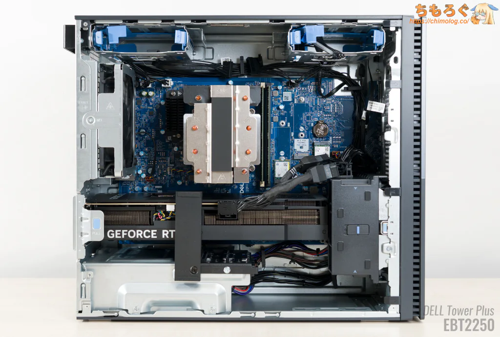 A szóban forgó Dell konfigurációnál, ami egyébként egy Intel Core Ultra 7 265K processzorból, 32 GB-nyi DDR5-56600 MT/s sebességű rendszermemóriából, egy GeForce RTX 5070 Ti sorozatú videokártyából, illetve egy Z890-es alaplapból állt, arra is odafigyeltek, hogy a videokártyát megtámasszák, így annak nyomtatott áramköri lapja nem tud vetemedni és csavarodni.