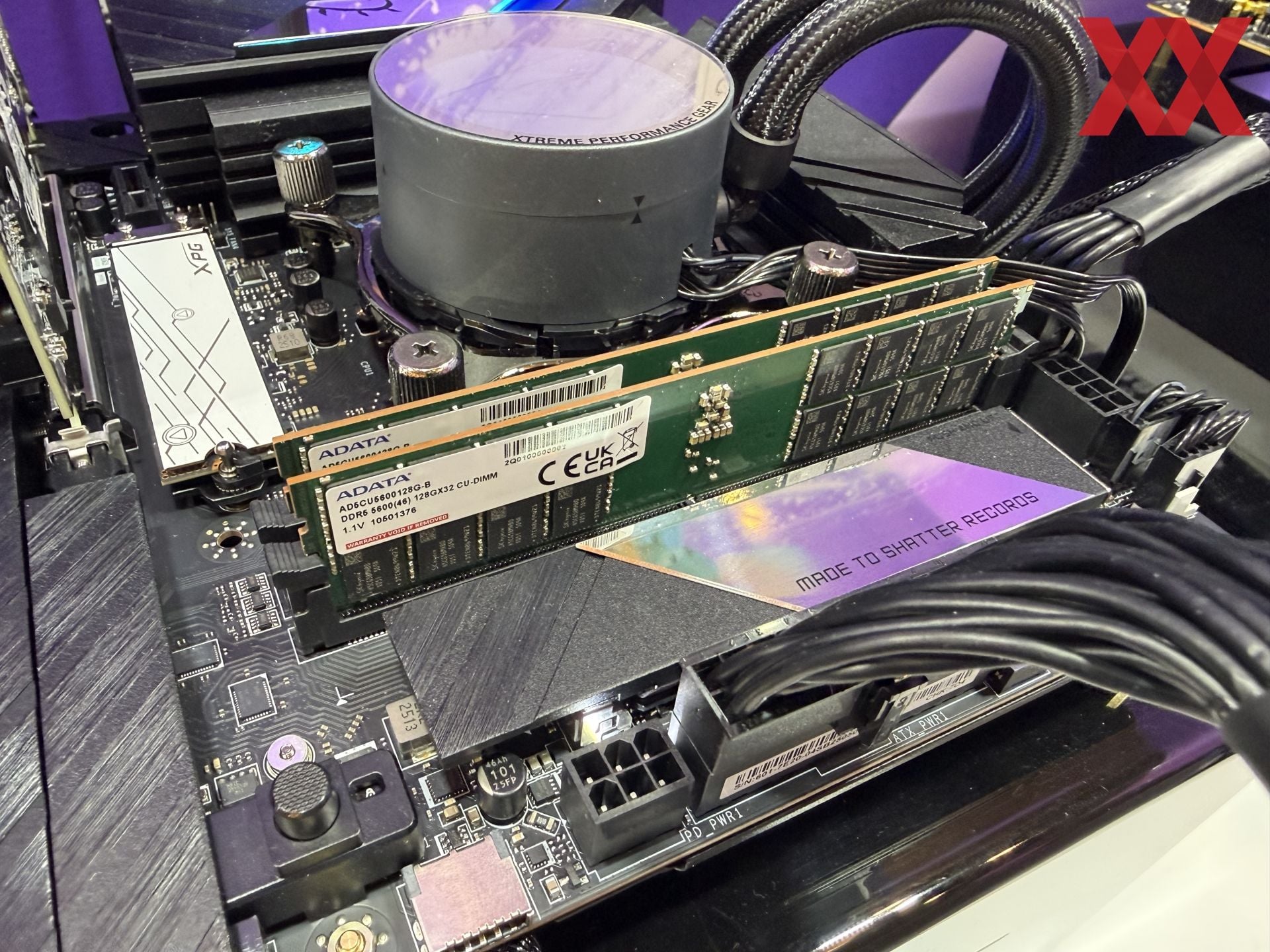 A Gigabyte háza táján a Z890 AORUS Tachyon speciális változatában mutatták be a 128 GB-os 4-rank DDR5 CUDIMM memóriamodulokat, amelyekből kettő fér el a deszkán, hála a két memóriafoglalat alkalmazásának. A 256 GB-nyi rendszermemória DDR5-7200 MT/s sebességgel ketyegett, teljesen stabilan.