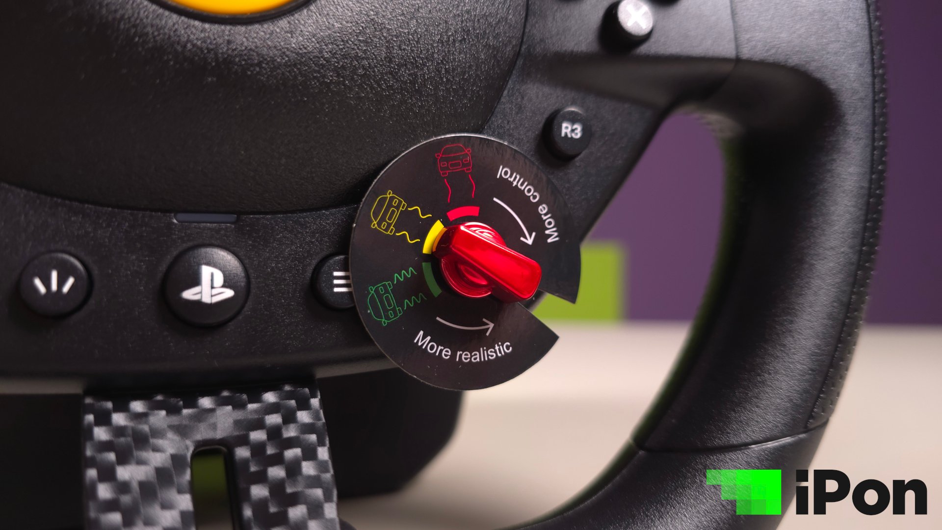 A legérdekesebb az a három állás között állítható vörös kapcsoló, mellyel választhatunk a könnyebb, kezdőbarátabb vezetési élményt nyújtó érzékenységi profil és a valamivel realisztikusabb viselkedés között. A gombok amúgy alapvetően igényesek és jó érzés lenyomni őket. Bár egy egészen kicsi mozgásterük van a foglalatukban, alapvetően a legtöbb normálisabb, igényesebb kontrollerhez hasonlóan jó érzés lenyomni őket.