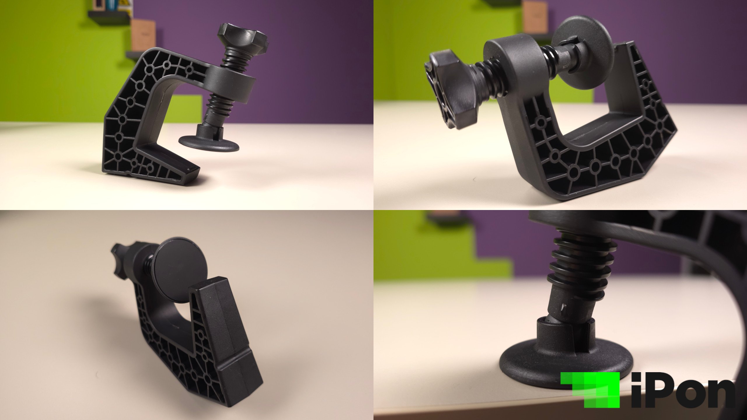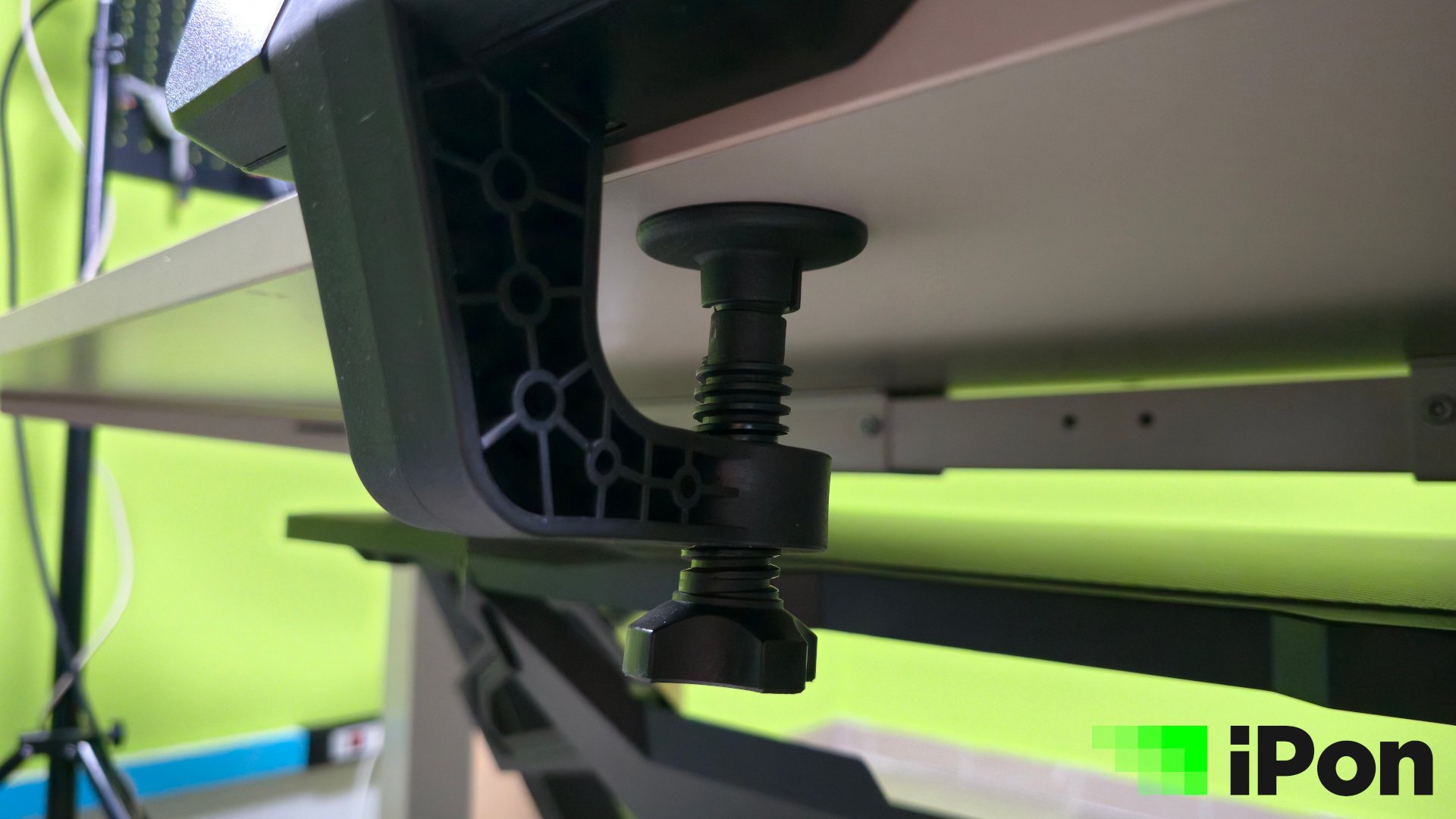 Azonban hiába a műanyag tálalás, a kormány nem csak masszív, de meglepően kellemes volt kézbe venni, persze csak a rögzítés után. A gyártó itt egy különálló műanyag elem mellett döntött, melyben egy csavarozható támasz felel azért, hogy az asztal alsó felére kellő szorítóerőt toljon. Sajnos ez is teljes mértékben műanyag, de abból legalább a masszívabb fajta és bár előfordult, hogy a gömbcsuklós megoldás a szorításkor kifordul a helyéről, egy gyors újrapróbálás után stabilan a helyén maradt és ezután nem volt gondom vele.