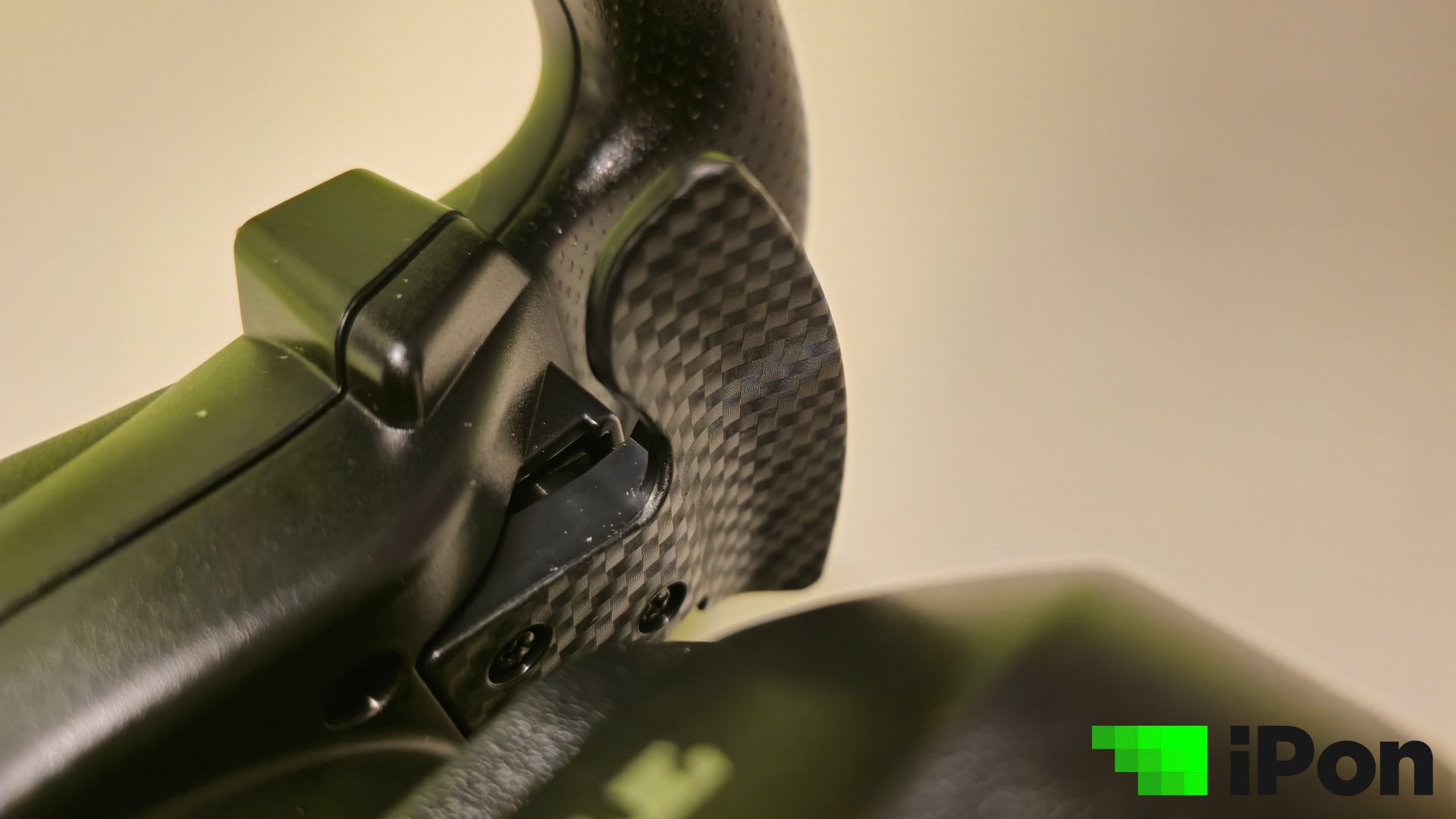 Ehhez a stabil és erős kattanást hallató váltószárnyak csatlakoznak a kormány mögött, melyekbe bátran támaszthatjuk az ujjainkat. Meglehetősen kicsi rá az esély, hogy véletlenül lenyomjuk őket, pont akkora erőkifejtést követelnek, amihez egy nagyobb gyerek már simán tud alkalmazkodni és egy felnőtt számára is megfelelő lesz. Ráadásul egyedül ezek készültek fémből, legalábbis ami a külső részeket illeti, szóval attól sem kell tartanunk, hogy esetleg eltörnek.