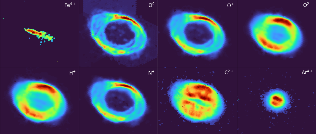 És ezen a ponton vettek érdekes fordulatot a dolgok. Amikor az oxigént és a hidrogént jelenítették meg a kutatók, a köd úgy nézett ki, mint mindig. De aztán észrevették, hogy egy bizonyos hullámhosszon, amely az ionizált vasra jellemző, feltűnik valami, amit korábban soha nem láttak a ködben. Egy furcsa gázsáv jelent meg a köd közepén, amely az egyik belső széltől a másikig húzódik.