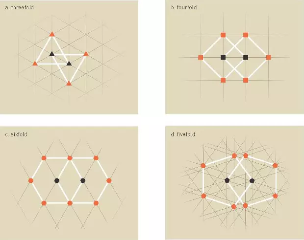 Alan Mackay, egy kristálytannal foglalkozó kutató Penrose eredményeiről hallva kíváncsi lett, hogy az atomok képesek-e nemperiodikus formákban elrendeződni. A modelljében Penrose-mozaik csempéinek „sarkaiba” atomokat imitáló köröcskéket helyezett, majd megnézte, hogy egy ilyen szerkezetű anyag milyen diffrakciós képet hozna létre: Csodák csodájára tíz fényes pöttyből álló, koncentrikus köröket kapott eredményül.