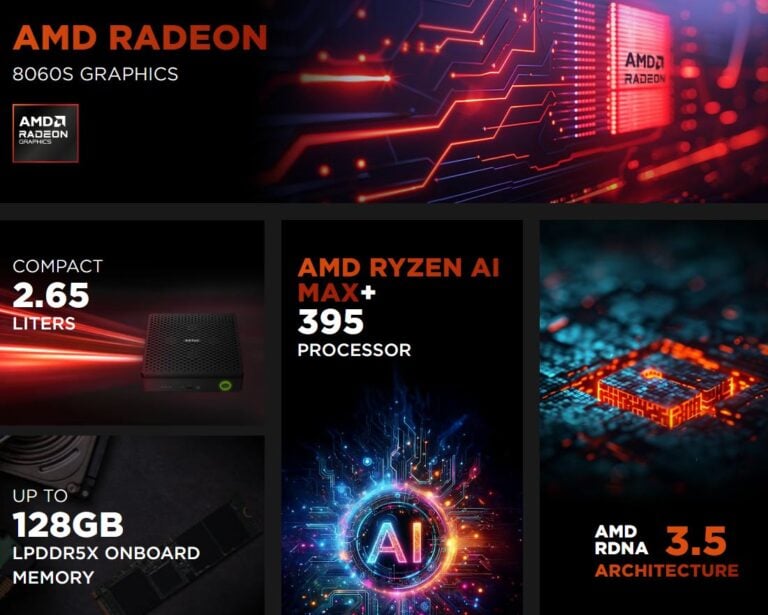 A ház 210 milliméter széles, 203 milliméter magas, illetve 62,2 milliméter magas házban helyet foglaló hardver gerincét egy RYZEN AI MAX+ 395-ös SoC egység adja, ami szokás szerint 16 darab processzormaggal és 32 szállal gazdálkodhat, természetesen ZEN 5 alapokon, valamint egy 40 aktív CU tömbbel ellátott Radeon 8060S típusú iGPU is a kínálat részét képezi, természetesen a szokásos, 50 TOPs számítási teljesítményt biztosító NPU társaságában.