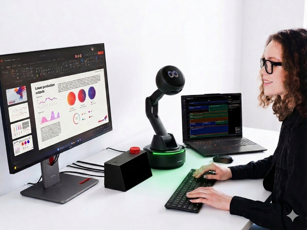 A Lenovo AI Workmate Concept már egy robotnak tekinthető, ami az íróasztalon egy valódi ezermesterként foglal helyet az MI-vel hajtva, és egyebek mellett még egy projektor is van benne. Az AI Work Companion Concept pedig egy rendkívül diszkrét, egyszerűbb kütyü, de nagyon hasznos társ lehet a munkahelyi környezetben.