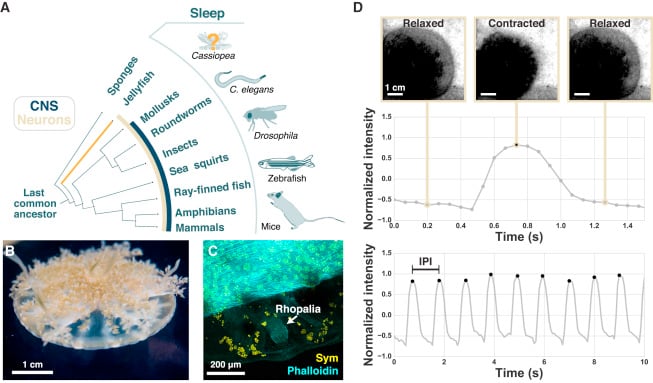 Az az elképzelés, hogy az alvás valójában megelőzte a központi idegrendszer evolúcióját, 2017-ben kezdett nyert terni, amikor Ravi Nath, jelenleg a Stanford Egyetem posztdoktori idegkutatója, és kollégái elsőként mutattak ki az alváshoz hasonló állapotot a medúzáknál. „Minőségi bizonyítékaink vannak arra, hogy az alvás az idegsejtekkel együtt jelent meg” – mondja Nath. „Valószínűleg van egy alapvető funkciója, de minden faj a saját igényeihez igazította.”