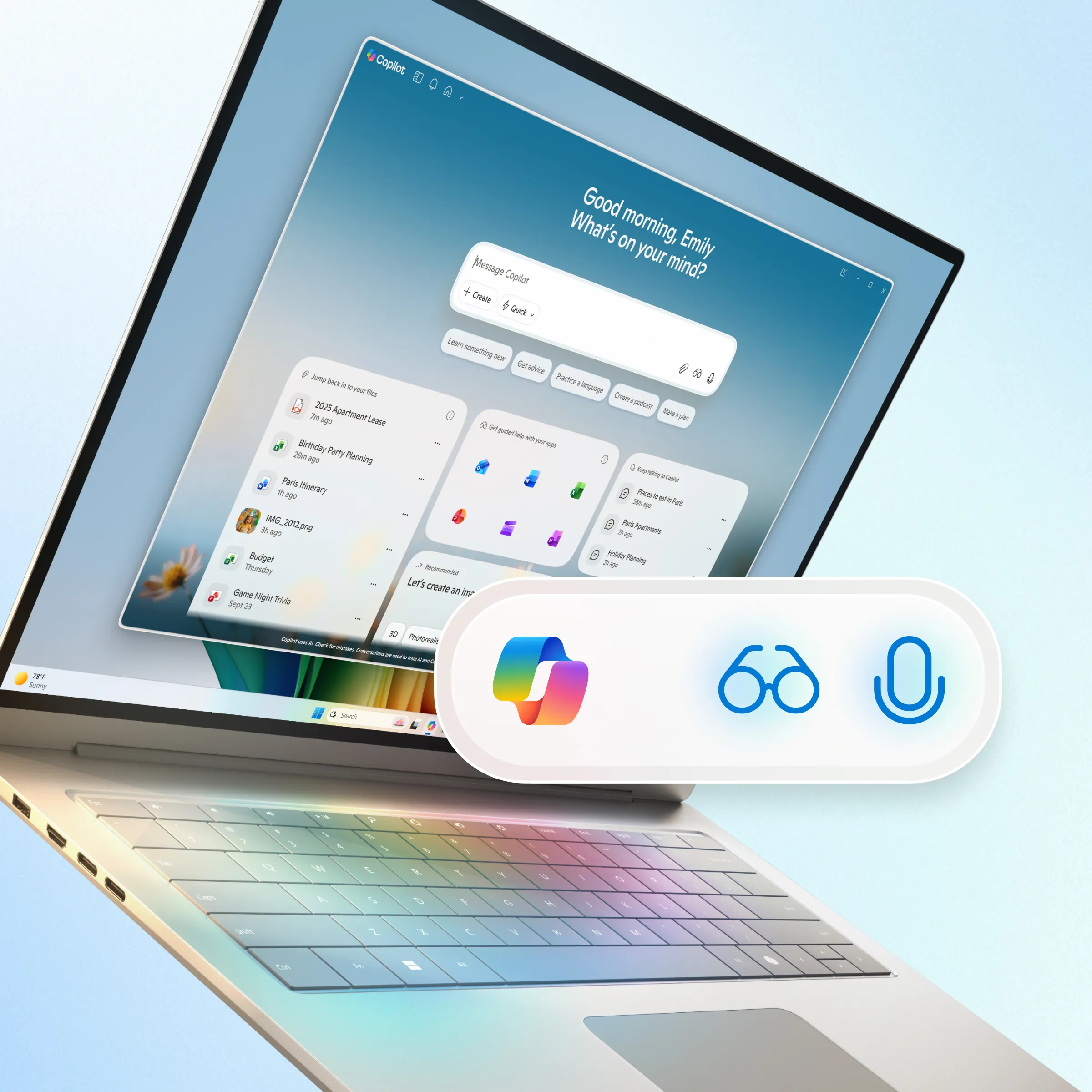 A Copilot használható lesz AI ügynök módjára is, azaz elvégezhet bizonyos feladatokat a felhasználó helyett, valamint segíthet a különböző problémák megoldásában, tanácsokat adhat, illetve javíthatja a produktivitás általános szintjét is. A Copilot Vision az egyik olyan újítás, amelyen keresztül az AI segítségét kérhetjük a kijelzőn megjelenő tartalmakkal kapcsolatban, de ezeket csak akkor streameli a rendszer, ha arra engedélyt adunk. A Copilot Vision keretén belül fotókkal vagy dokumentumokkal kapcsolatos feladatok elvégzésére éppúgy lehetőség nyílik, mint PC-s problémák megoldására, új feladatok megtanulására, illetve játékok alatt is segítő jobbot nyújthat a funkció, ha elakadunk. Ez a funkció alapértelmezetten ki lesz kapcsolva, csak akkor működik, ha külön kérjük.