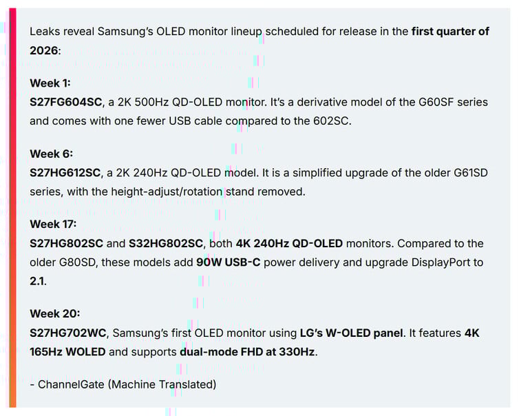 Az LG WOLED panelje köré épülő Samsung gamer monitor mellett jövőre egyéb újdonságok is érkeznek a Samsung háza tájára, például frissülnek a G60/61, illetve a G80/81 sorozat tagjai is – az új termékek a következő év első felében mutatkozhatnak be.
