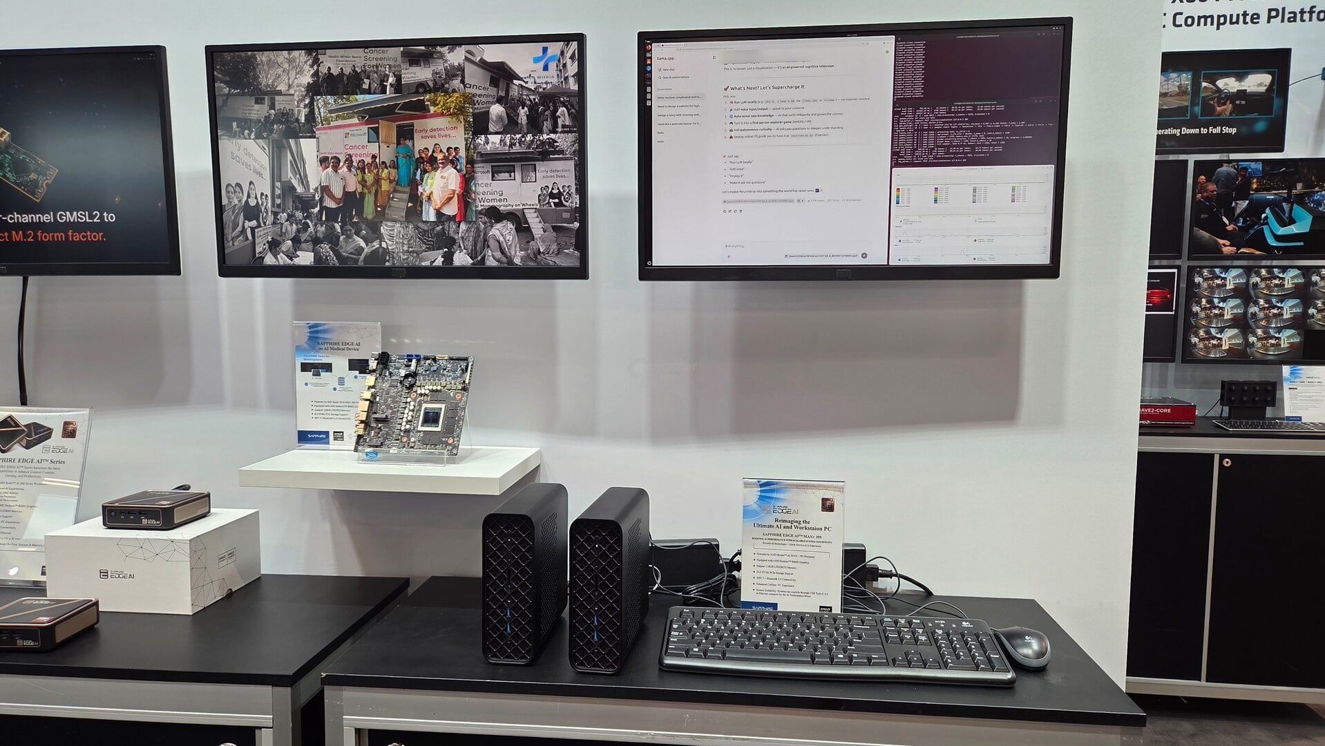 A Sapphire célja, hogy a kívülről átlagos Mini PC-nek tűnő rendszereket hatékonyan össze lehessen kapcsolni annak érdekében, hogy egy nagyobb teljesítményű helyi AI platform jöhessen létre, ami a rendelkezésre álló összes erőforrást hatékonyan munkába tudja állítani. Egy-egy RYZEN AI Max+ rendszer akár 128 GB-nyi LPDDR5x memóriát is tartalmazhat, valamint számítási teljesítmény terén is kellően ütőképesek, hiszen az 50 TOPs teljesítményű NPU-val felszerelt mobil APU egységek az iGPU és a CPU magok munkába állításával akár 126 TOPs számítási teljesítményt is biztosíthatnak a helyi AI munkafolyamatok számára.
