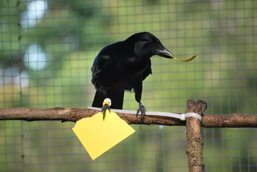 Jelbert és társai azt sejtették, hogy a madarak emlékezetből dolgozhatnak, vagyis valaha egyszer látták az adott darabot, és azt aztán emlékeik alapján képesek maguk is legyártani, ha szükségük van rá. Ennek tesztelése érdekében a csapat nyolc varjút tanított meg arra, hogy ha papírdarabkákat helyeznek egy „automatába” (igazából egy sima fadobozba), finomságot kapnak.