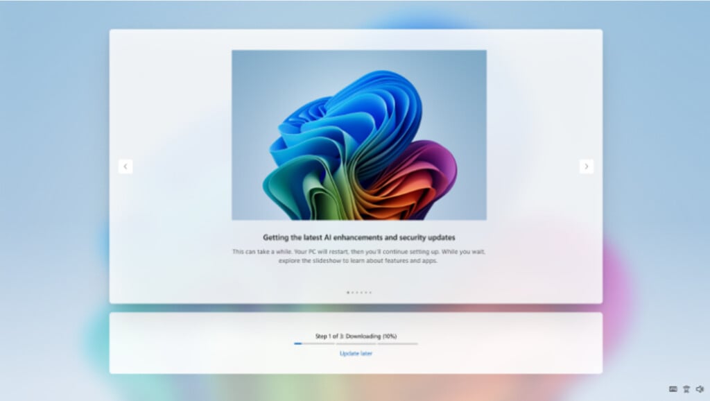 Az újítások között szerepel, hogy a Microsoft lehetőséget ad új Windows telepítésekor arra, hogy az OOBE( Out-of-Box Experience) keretén belül kihagyjuk a szükséges Windows-frissítések telepítését. Ez azért lehet lényeges, mert sok esetben alaposan lelassítja a telepítési folyamatot az, hogy a Windows még beszerzi a szükséges frissítéseket, amelyek az elmúlt hónapok folyamán megjelentek, mielőtt használhatóvá válna a rendszer. Akkor, amikor a lehető leggyorsabban használható rendszerre van szükség, ez felesleges frusztrációt okoz a felhasználók számára, így a fejlesztők lehetőséget adnak arra, hogy a telepítés során a frissítések keresését és telepítését ki lehessen hagyni – egy arra alkalmasabb időszakban be fogja pótolni a folyamatot a rendszer.