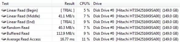 Merevlemez: Hitachi HTS542516K9SA00 (160 GB, 5400 rpm, 8 MB cache, SATA)