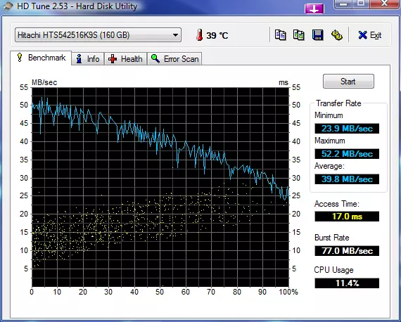 A merevlemez sebességével meg voltunk elégedve, de sajnos processzidőből többet evett a szokásosnál. Zajszintje minimális volt.