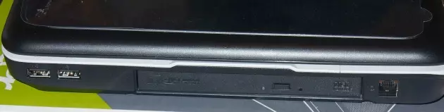A portok elhelyezése kicsit szerencsétlen, ugyanis bal oldalra próbáltak besűríteni mindent, jobb oldalra egyedül két USB port és egy modem aljzat jutott. Jobban örültünk volna, ha jobb oldalra pakolják a memóriakártyaolvasót, illetve a maradék USB portból legalább egyet hátra tesznek, így egy egér csatlakoztatásánál nem kellene körbekábelezni a fél gépet.