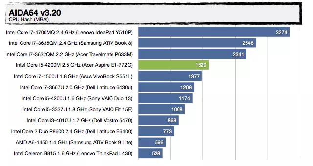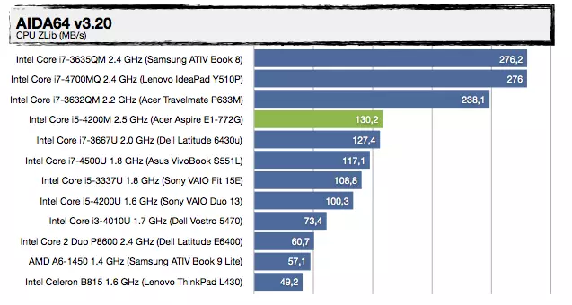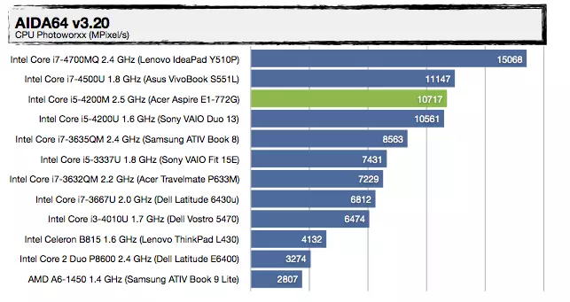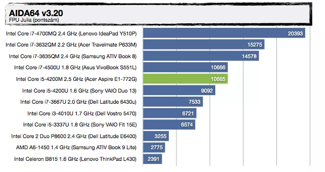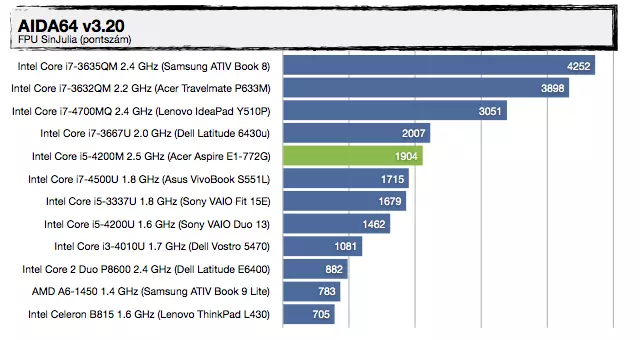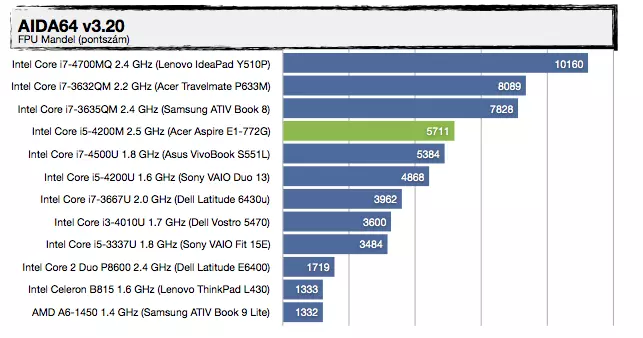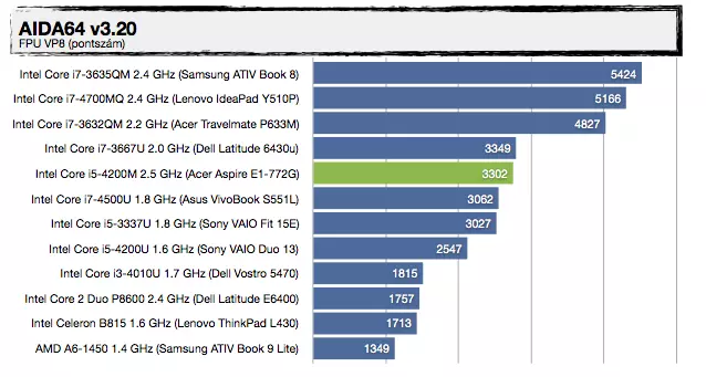 Amennyiben csak a processzort dolgoztattuk meg, úgy a túlmelegedés nem játszott közre az eredményekben, azt a fenti grafikonok is tanusítják, a Core i5-4200M úgy teljesített, ahogy az tőle elvárható volt, a Photoworxx nevű tesztben a kétcsatornás memória használat miatt pedig látványosan megugrott a pontszáma a HP ProBook 450 által produkálthoz képest.