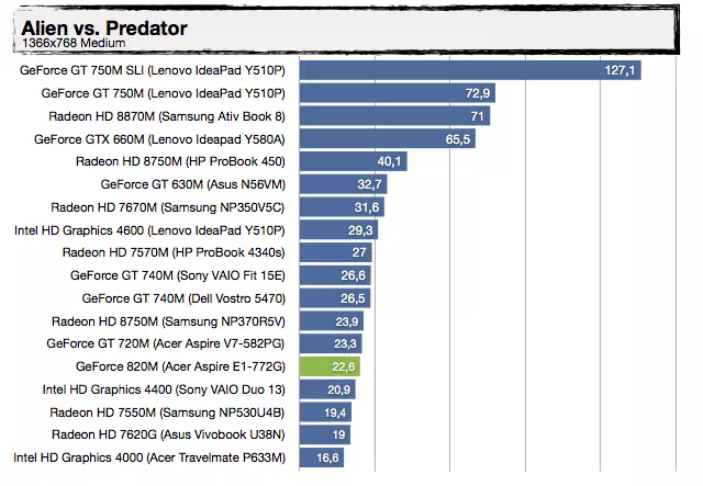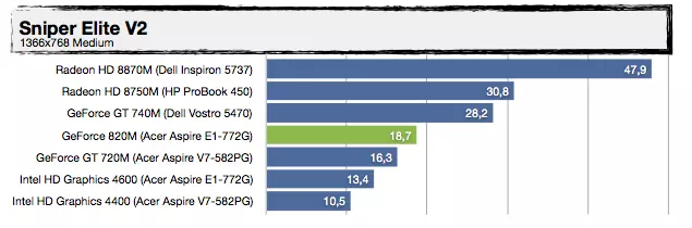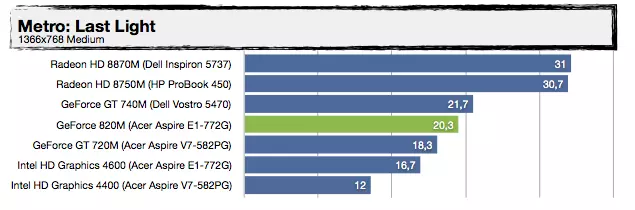 Ami a játékokat illeti, nos, a GeForce 820M nem hazudtolta meg azt a grafikus magot, amelyre épül. Azt nem állítjuk, hogy nincs értelme ilyen videokártyával szerelt notebookot venni, azt viszont igen, hogy egy 17”-os, full HD kijelzővel ellátott készülékbe ennél jóval erősebb egységet kellett volna pakolni. Aki tehát elsősorban játékra használná a gépet, az nagyon nagy kompromisszumokat kell kötnie annak érdekében, hogy mindezt 1920x1080-as felbontásban tegye. Ennél fogva érdemes meggondolni, megér-e nekünk bő 20 ezer forintos felárat a dedikált videokártya avagy sem.
