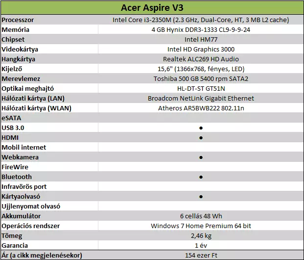 A tesztben szereplő Acer Aspire V3-at a gyártó hazai képviseletétől kaptuk tesztelésre, köszönjük!
