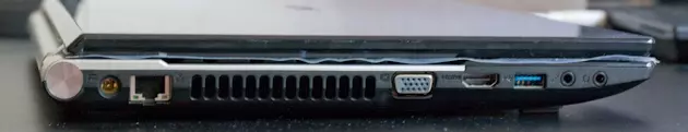 Eggyel kevesebb USB csatlakozót kapunk, mint az 5830TG esetében, azaz összesen három aljzat áll rendelkezésünkre (ebből a kékre dugott eszközöket a gép kikapcsolt állapotában is tölthetjük), a többi port gyakorlatilag ma már alap dolognak tekinthető. Amennyire szerencsétlen helyre tették a LAN csatlakozót a TimelineX-nél, annyira normálisan sikerült elhelyezni azt a V3-on, bár a vezeték nélküli internet korában ennek aligha van jelentősége. A kártyaolvasót Aceres szokás szerint elöl találjuk a bal oldali sarokhoz közel.