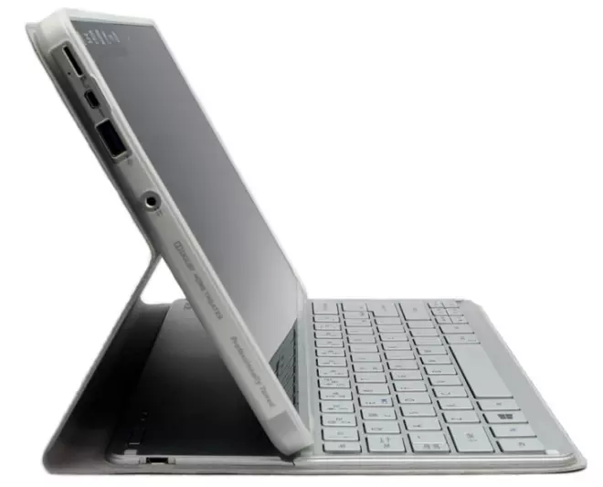 A W510 tesztben említettük, hogy a Pro változat dobozából előkerült egy bézs színű, igencsak elegáns tok. Nos, tesztalanyunk csomagolásában is megtalálható egy ilyen, csak éppen itt egy Bluetooth billentyűzet is beépítésre került.