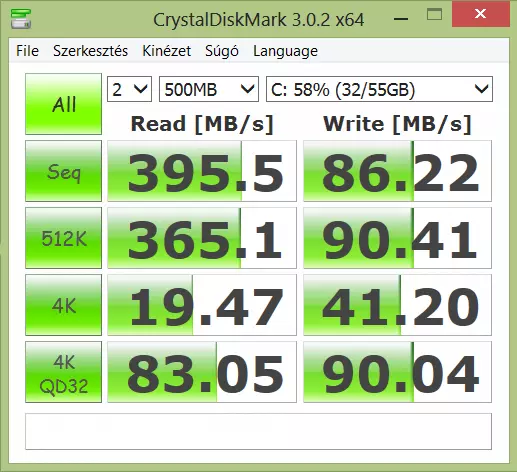 Először a CrystalDiskMark eredményekre vessünk egy pillantást. Olvasásban mintegy hatszor, írásban is legalább négyszer akkora sebességet kapunk, mint a kistesó esetében, és ez rendkívül jó hatással van mind a programok telepítésére, és a frissítésekre.
