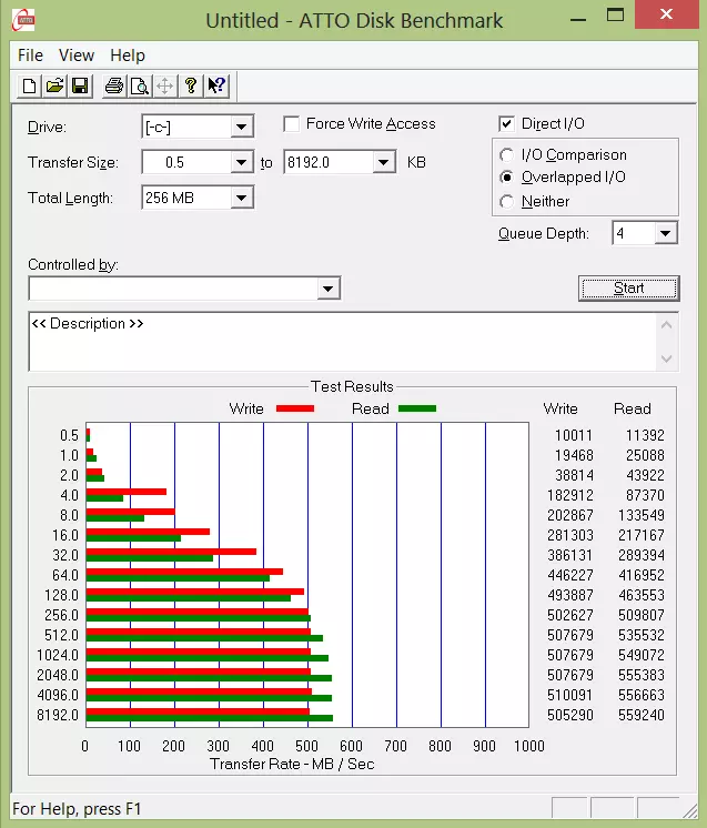 Az ATTO Disk Benchmarkkal is meghajtottuk a tabletet, és itt sem kellett csalódnunk: bizonyos versenyszámokban 500 MB / sec feletti sebességek is kijöttek, ami azért figyelemre méltó eredmény.