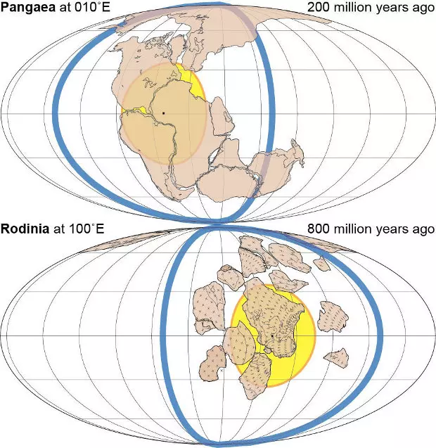 Mitchell és kollégái a kettő között félúton teszik le voksukat, vagyis minden szuperkontinens 90 foknyira jött létre az előzőhöz képest. A kutatók elemzése elsőként tett kísérletet az egykori szélességi adatok megállapításán kívül a hosszúság determinálására is, a mágneses pólus helyének változásait is bevonva a számításokba. A kapott adatok összessége azt sugallja, hogy Rodinia centruma 88 foknyira helyezkedett el Nuna középpontjától, Pangeáé pedig 87 fokra Rodinia központjától, vagyis a mai Afrika közelében helyezkedett el.