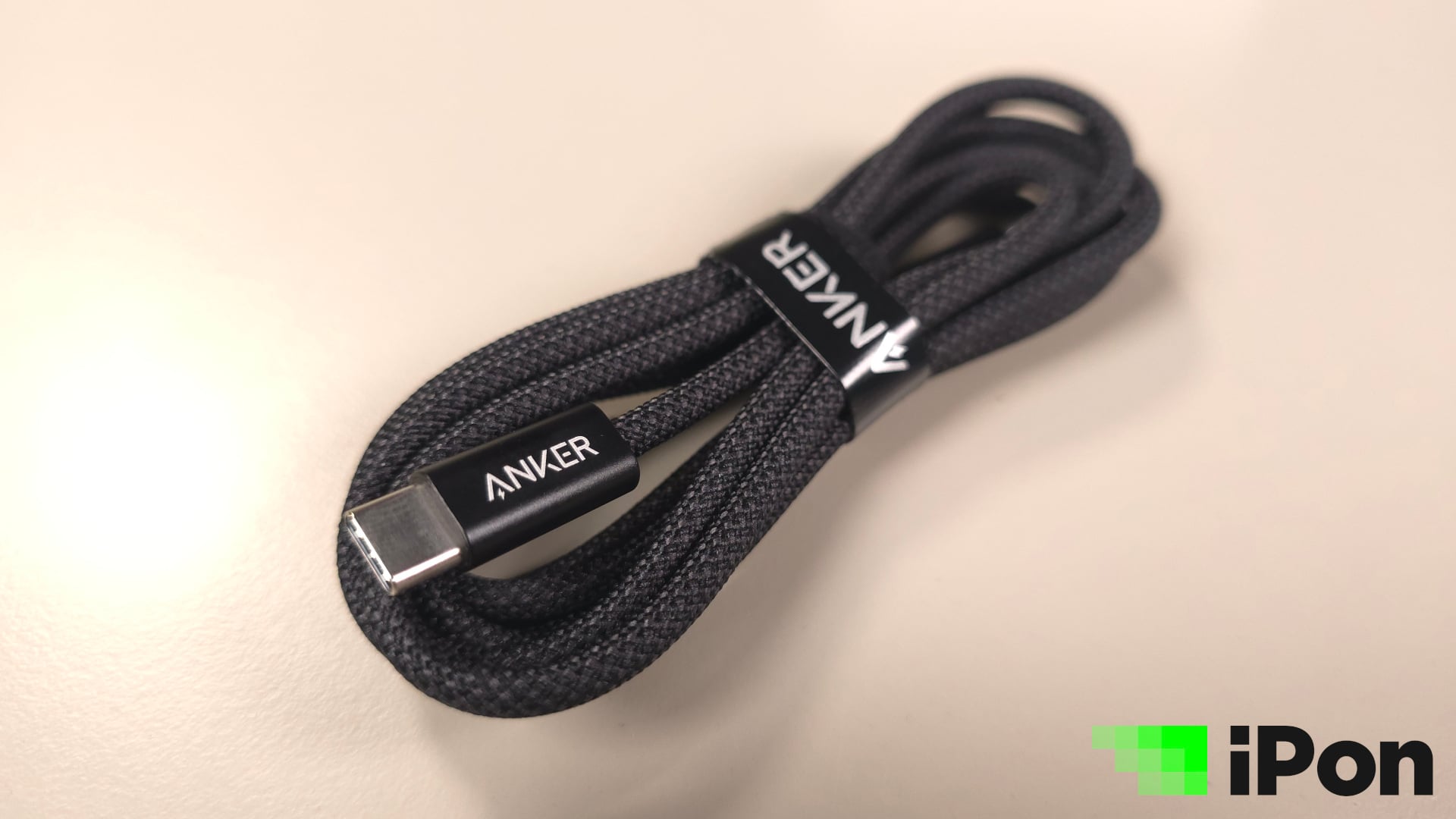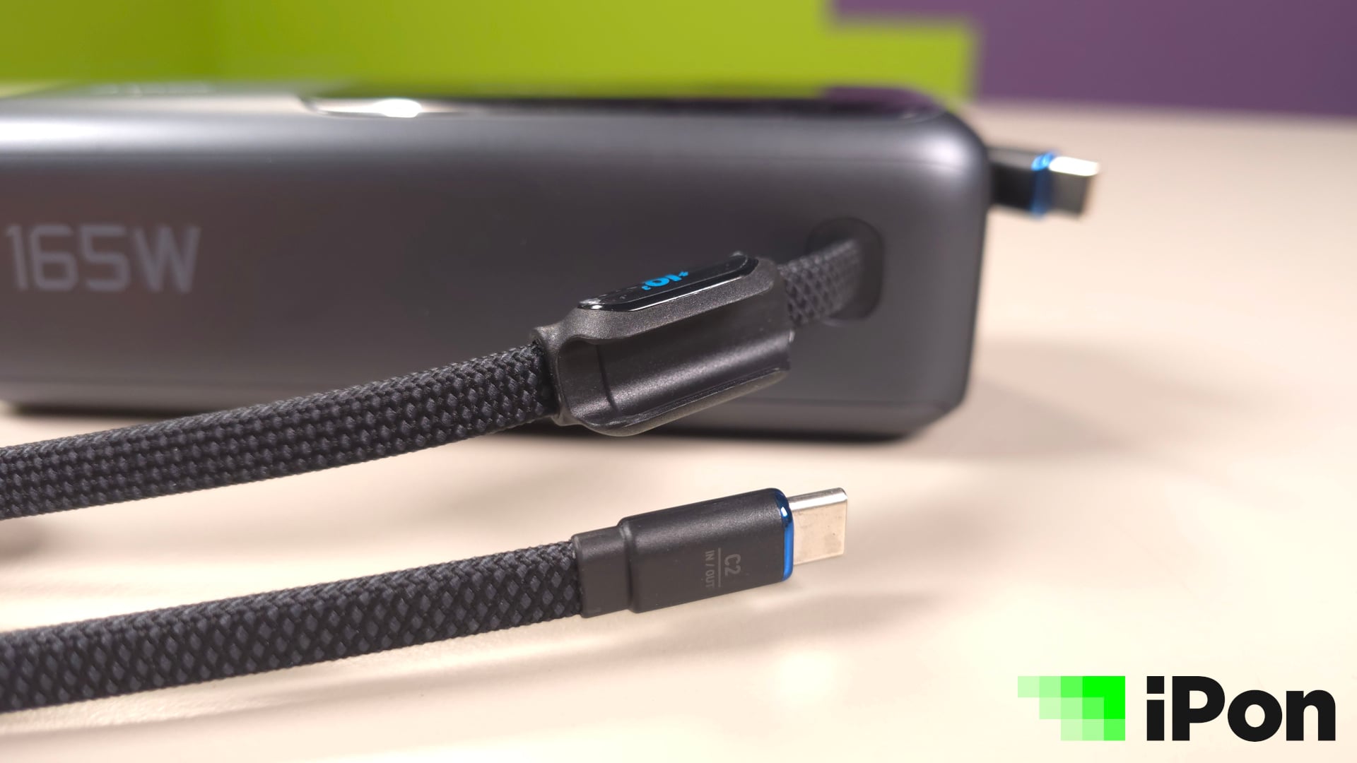 Ennél nem sokkal kiterjedtebb az adapterhez járó körítés, hiszen konkrétan kimerül egyetlen Type-C kábelben. Utóbbi mondjuk kifejezetten igényes és masszív darab, erős műszövet borítással a vezetéken, márkajelzéssel a C-s fejeken, illetve a tépőzáras kötegelőn, ami szintén van rajta. Fontos, hogy a maximális teljesítményhez EPR (Extended Power Range) szabványra felkészített kábel szükséges, ez pedig ilyen.