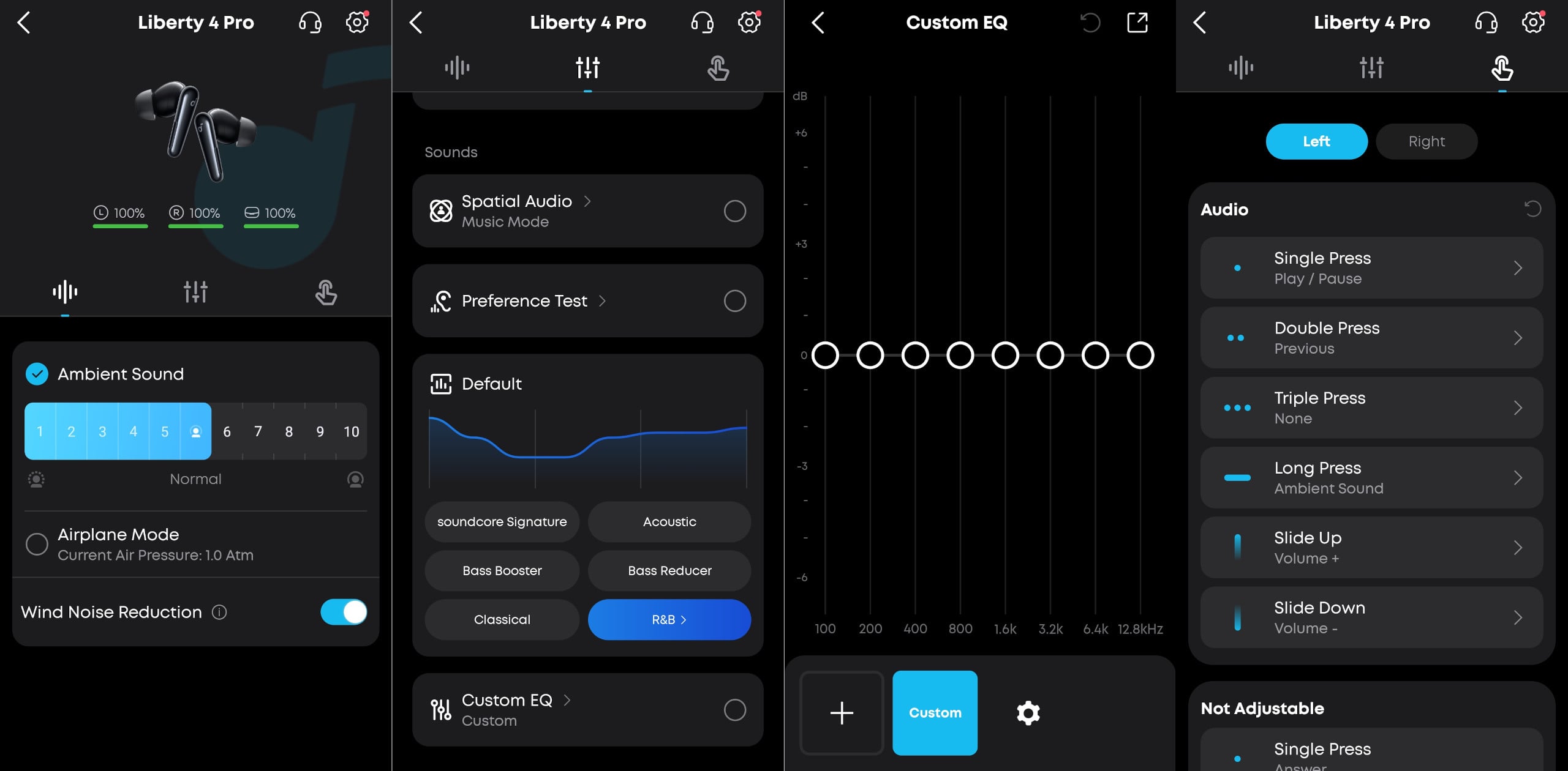 Ezt leszámítva azonban szuper a szoftver, a környezeti hangok felerősítése vagy a zajszűrés egy ujjhúzással állítható csíkon módosítható, ami egyszerűvé és praktikussá tette a műveletet. A hangzás amúgy előre tárolt hangprofilokkal és manuális finomhangolással is módosítható, tehát mindenki számára elérhető az eszköztől kapható legjobb hangzás.