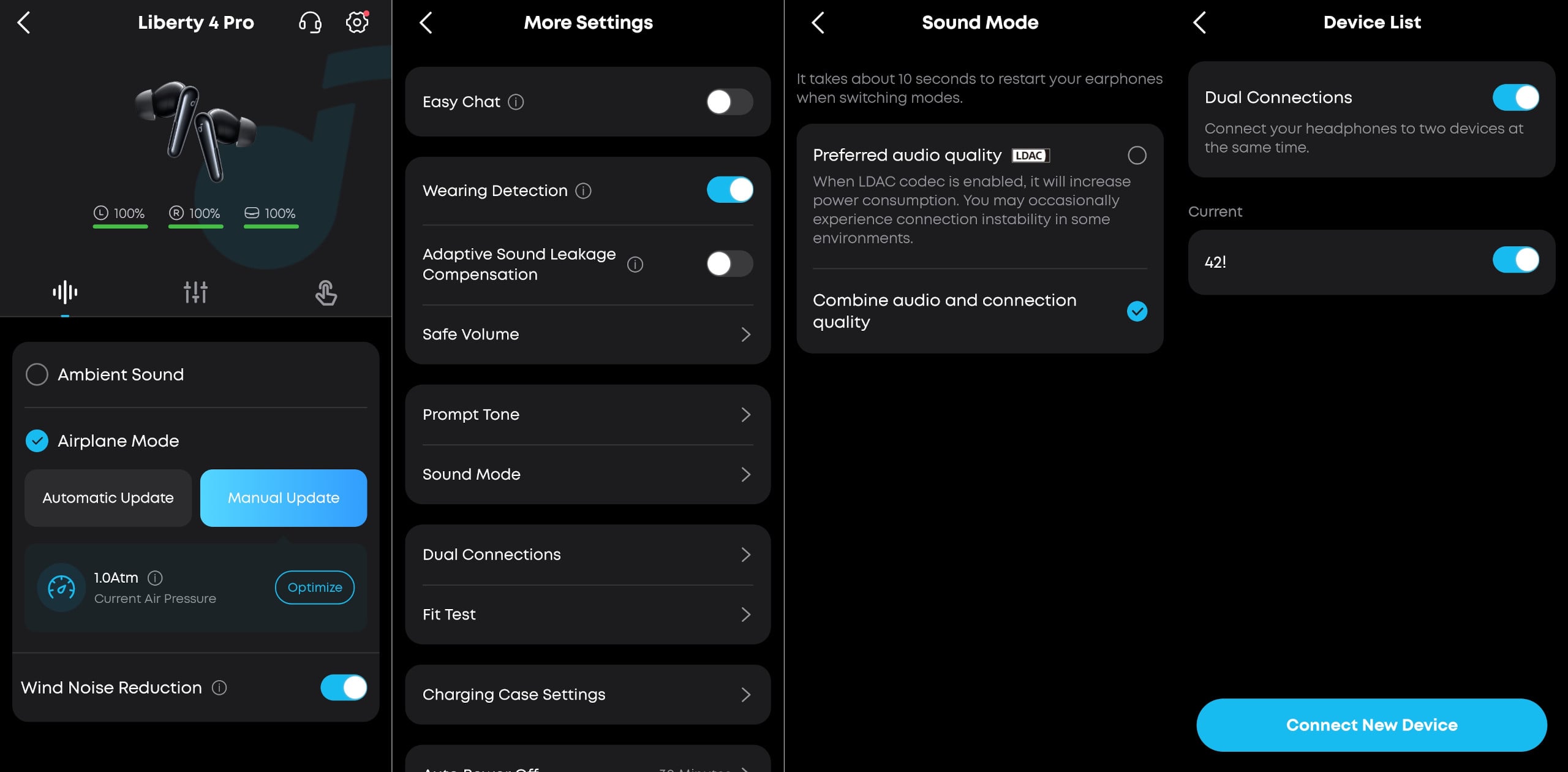 Márpedig a Liberty 4 Pro egészen nagyszerűen szól, magas, közép és mély tartományban egyaránt, ráadásul már az első találkozás is kellemes volt, meglepően tiszta és telt hangzással fogadott. Némi finomhangolással - pl. a mély hangok enyhe lecsavarásával - konkrétan a Sony 1000XM5 mellett sem kell szégyenkeznie, ami egy jóval drágább termék.