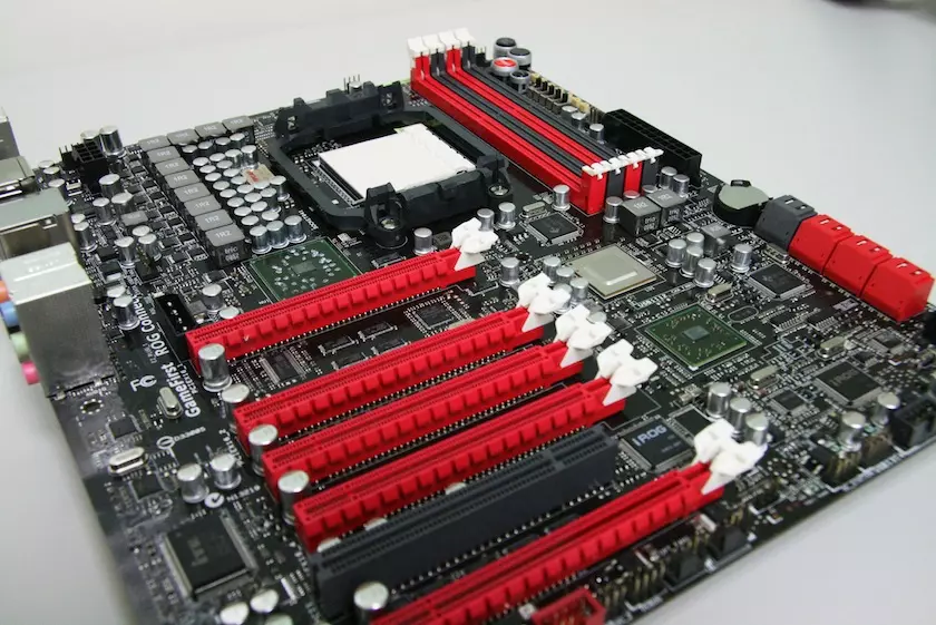 A különleges szolgáltatások között megtaláljuk még a RoG Connect technológiát is, ami Bluetooth kapcsolaton keresztül ad lehetőséget a tuningra. Az SB 850-es deli hídnak köszönhetően a rendszerben található 9 darab SATA port közül hat egészen biztosan SATA 6 Gbps-os szabványra épül, a maradék hárommal kapcsolatban azonban egyelőre nincsenek információk, de ezek jó eséllyel SATA 3 Gbps-os portok lesznek.