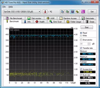 A teljesítményteszteket Windows 7 alatt futtattuk le, a beépített pontozó rendszer pedig rögtön az elején nyilvánvalóvá tette: ez bizony egy elég erős gép, vékony kialakítás ide vagy oda, simán hozza a Zenbookok tempóját, legalábbis, ha a kombinált teljesítmény mutatót nézzük, mindenképpen. A processzor valamivel lassabb, mint az erősebb kétmagos Core i7-ek, viszont ezt ellensúlyozza az Intel HD Graphics 4000-nél vélhetően nem kicsit erősebb Radeon HD7620G, amely 512 MB memóriát használ fel a rendelkezésre álló 6 GB-ból.