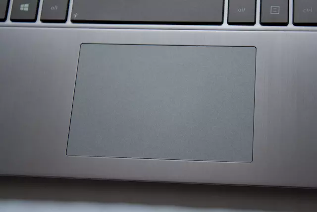 A touchpadról viszont egészen biztosan megállapítható, hogy megegyezik a Zenbookokban lévővel. Nagy kiterjedése miatt könnyen és kényelmesen használható, alsó fele viszont még mindig furcsán viselkedik, mint fizikai gomb. Szerencsére van lehetőség a helyi menü/másodlagos funkció kiváltására többujjas érintéssel, így ez az apró malőr csak ideig-óráig jelenthet problémát.