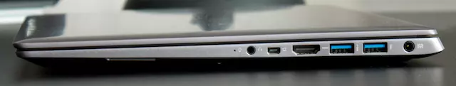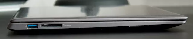 Amit a legjobban díjaztunk a Vivobookban az az, hogy nem akart mindenhol értelmetlenül vékony lenni, így a Zenbookkal ellentétben a felső és alsó burkolatok végre párhuzamosak egymással, lejtésnek még csak a nyomát sem látjuk. Ez két szempontból is hasznos: egyrészt – számunkra – ez nem rontja tovább az átlagtól amúgy is eltérő gépelési komfortot, másrészt némileg több csatlakozó fér el a készülék jobb, illetve bal oldalán. Ennek eredményeképpen három USB 3.0 portot, rendes HDMI-t és kártyaolvasót is kapunk, de természetesen lehetőségünk van analóg D-Sub kimenet használatára is, az ehhez szükséges mini VGA->VGA átalakítót a kereskedelmi forgalomba kerülő példányok dobozában megtaláljuk. Vezetékes hálózati adapter használatára legfeljebb USB csatlakozón keresztül van lehetőségünk, de a célközönség valószínűleg 2013-ban már nem nagyon igényel ilyen technikát.