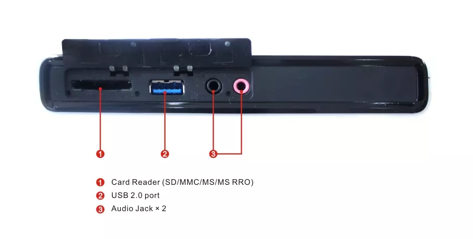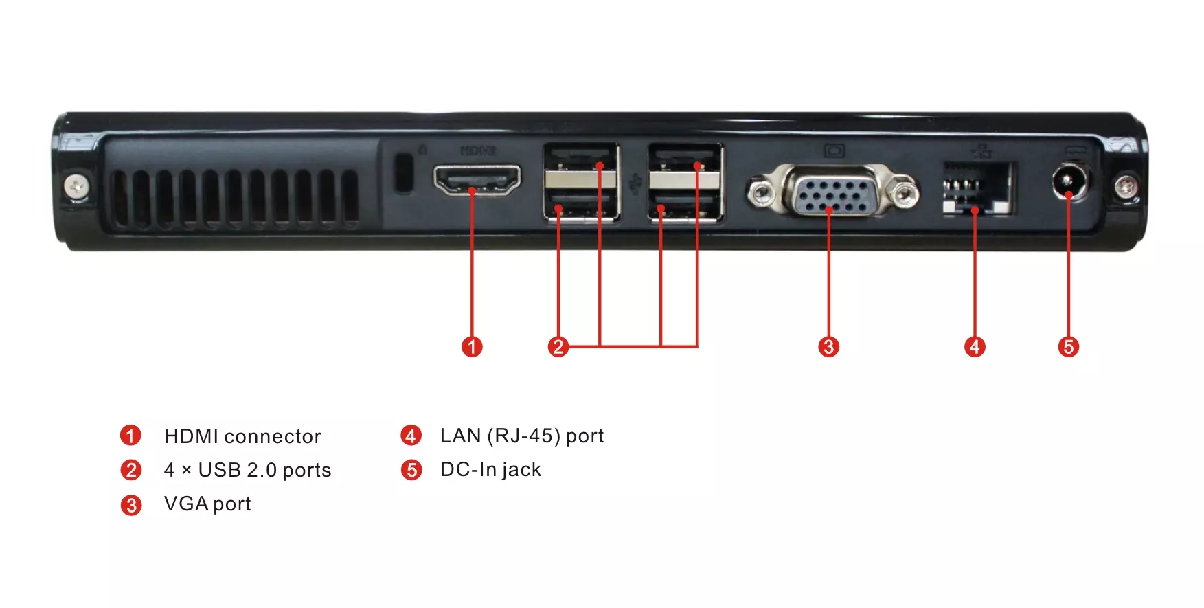 A csatlakozók között eztúttal összesen 5 darab USB 2.0-s port, a szokásos audió portok, valamint egy HDMI és egy D-Sub videó kimenet található. A kínálatban a WiFi adapterhez tartozó antenna csatlakozó és a Gigabites Ethernet port RJ45-ös csatlakozója is jelen van, plusz még egy öt az egyben memóriakártya-olvasót is kapunk (SD/MMC/MS/MS Pro). Furcsa módon az előlapi USB csatlakozó kék színű, amellyel az USB 3.0-s portokat szokás jelölni, de mind a sajtóközleményben, mind pedig a gyártó hivatalos weboldalán USB 2.0-s portról olvashatunk. Lehet, már készül az USB 3.0-s változat is?