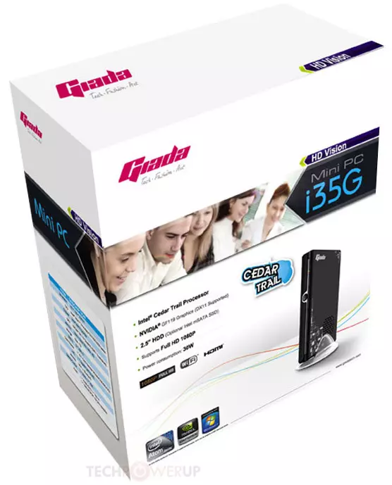 A legfrissebb apró, Atommal szerelt, Nvidia videokártyával ellátott komplett PC-t ezúttal a Giada mutatta be. A feketében és fehérben egyaránt elérhető újdonság 192 x 155 x 26 milliméteres mérettel bír, belsejében pedig egy NM10 Express alapú alaplapban egy Atom D2500-as lapul. A 30 wattos fogyasztás mellett üzemelő PC alap esetben 2 GB-nyi DDR3-1066 MHz-es rendszermemóriával érkezik, de ez igény esetén 4 GB-ig bővíthető – apró hiba, hogy ekkor a 2 GB-os modul helyére egy 4 GB-osat kell bepakolni, ugyanis csak egy So-DIMM memóriafoglalat áll rendelkezésre.