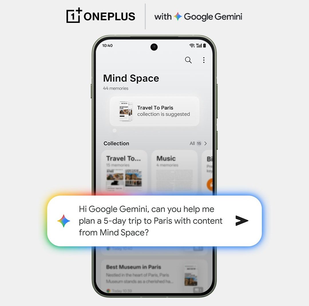 Előzetesen egy másik képen a OnePlus azt mutatta meg, hogy a Google Gemini mélyebb integrációt kap majd az OxygenOS keretei között. Külön kiemelte a cég azt, hogy a grafikus felhasználói felület egyedi funkcióit is támogatja majd a generatív MI-alapú chatbot. Nevezetesen például a Mind Space funkcióval kapcsolatos feladatok megoldására is alkalmas lesz. A Google és a OnePlus között egyébként is jó a viszony, a kínai gyártók közül talán ez a páros áll egymáshoz legközelebb.