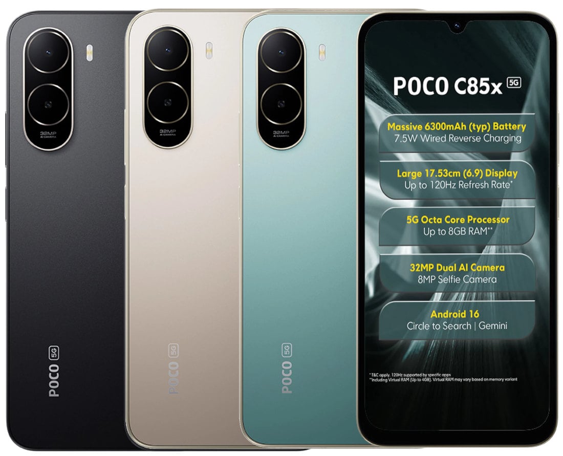 A Poco C85 két kivitelben készült, van belőle 4G LTE és 5G támogatású változat is, most pedig megérkezett a C85x, ami az 5G megtartása mellett töri lejjebb a vételárat valamelyest szerényebb specifikáció révén. Ez a Poco C széria itthon is népszerű, a C85 is kapható hazánkban.