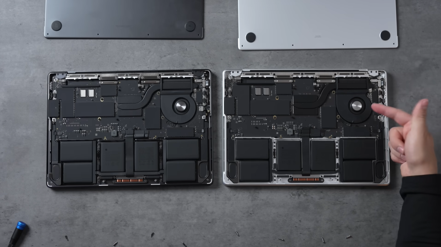 A szétszedés alkalmával kiderült, hogy a két MacBook Pro az eltérő SoC ellenére nagyjából hasonló felépítéssel rendelkezik, hűtés terén nincs is változás, az SSD alrendszer pedig két darab NAND Flash chipből áll, amelyek egyenként 256 GB-nyi kapacitást biztosítanak. A két lapkából álló felépítés mindenképpen előrelépés azt követően, hogy az M2 Pro alapú MacBook Pro anno elég nagy felháborodást okozott, mivel egyetlen 512 GB-os NAND Flash memóriachip köré épülő SSD alrendszert használt, ami jelentősen visszafogta az olvasási és írási tempót. Úgy néz ki, tanultak az esetből és ütőképesebb teljesítményű tárhelyet vetnek be már a belépőszinten is.