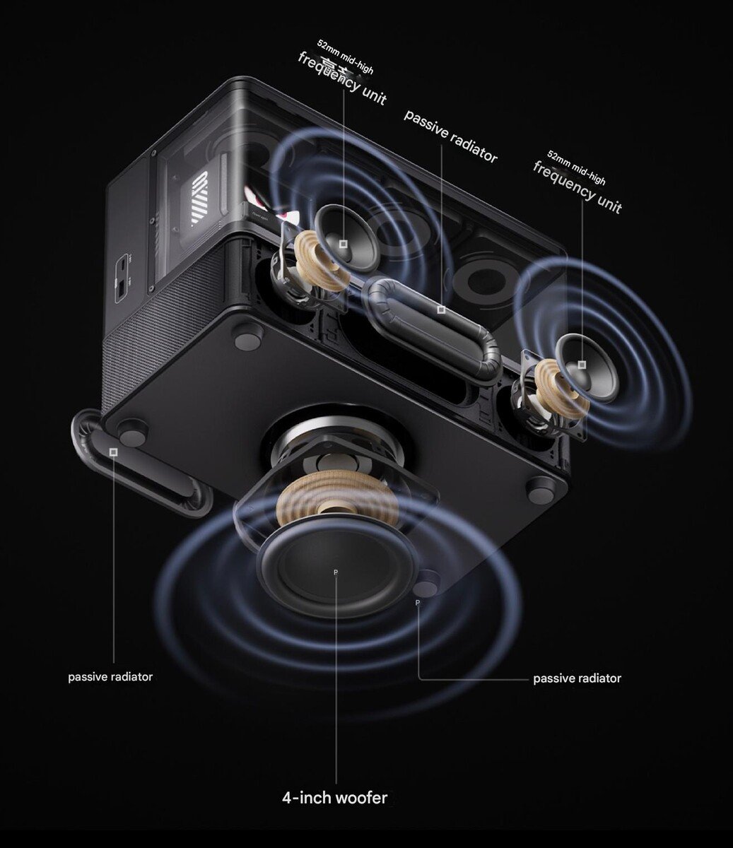 A hangszórókat egy 60 W-os terhelhetőségű beépített erősítő szólaltatja meg, amit többféle csatlakozáson keresztül is össze lehet kapcsolni a műsorforrással, akár okostelefont, akár PC-t, akár egyéb eszközt használnánk. Az eszköz USB kábelen keresztül, AUX audió bemeneten keresztül, illetve vezeték nélküli kapcsolaton keresztül is működhet – utóbbit egy Bluetooth 6.0-s vezérlő szolgálja ki.