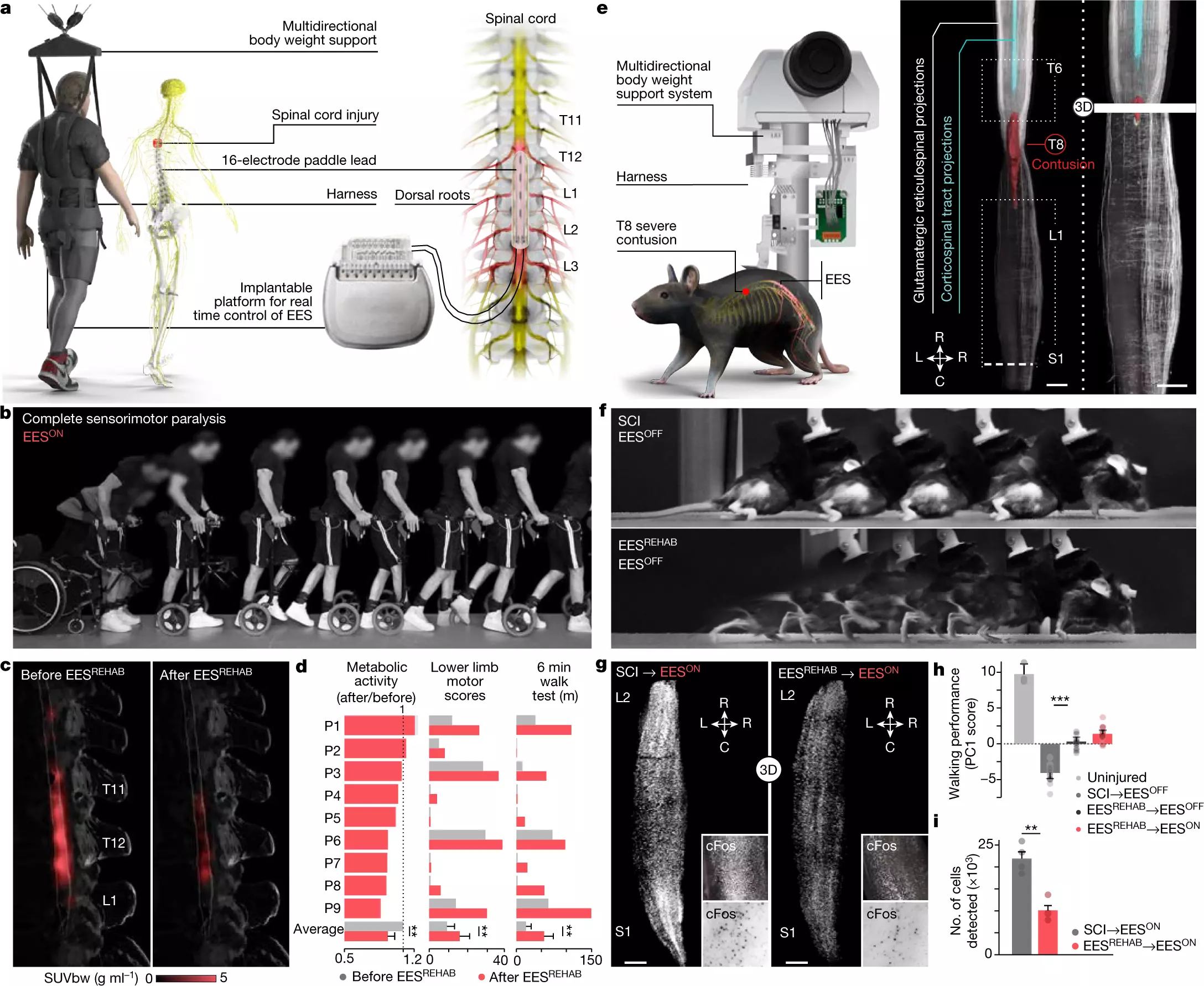 A gerincvelő súlyos sérülése következtében megszakadhat a kapcsolatot az agy és a gerinc alsó részén található idegsejtek hálózata között, amelyek a járást irányítják. Grégoire Courtine svájci kutató és kollégái 2018-ban igazolták, hogy az epidurális elektromos stimulációnak (EES) nevezett technikát, amely során elektromos impulzusokat juttatnak az alsó gerincvelői idegekbe, intenzív edzéssel kombinálva újra járásra bírhatják a súlyos gerincsérülteket. A kísérlet mindhárom résztvevője képes volt önállóan, járókerettel vagy mankóval járni, holott előtte alig tudták érzékelni és mozgatni alsó végtagjukat. Két másik kutatócsoport hasonló eredményeket prezentált még ugyanebben az évben.