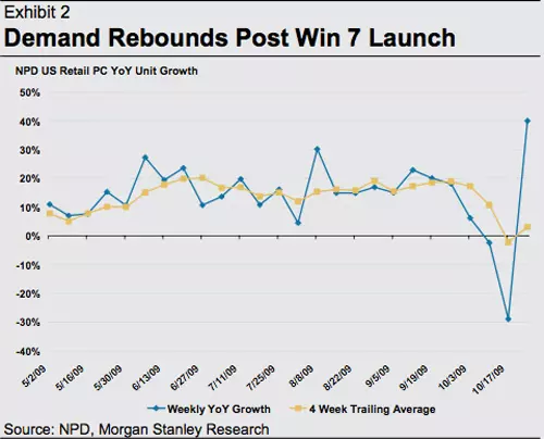 Bár netes jelenlét szempontjából a Mac-ek erősödtek a Win7 érkezését követően, ezzel együtt azonban (Ballmer várakozásainak megfelelően) a PC-eladások száma is igen jelentősen megugrott - mutatott rá Katheryn Huberty, a Morgan Stanley elemzője.